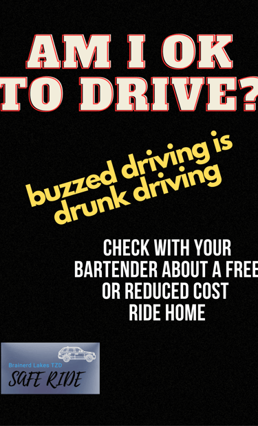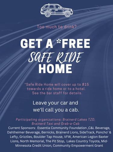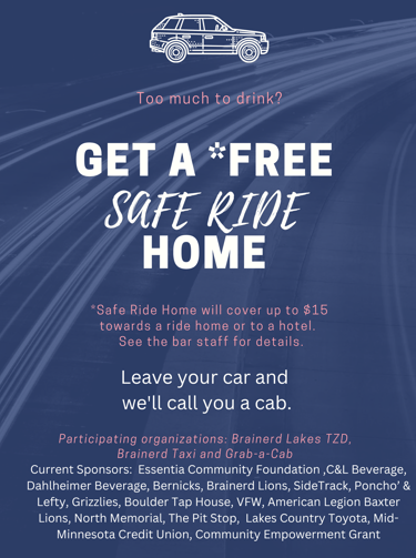 Free or reduced cost rides home for Brainerd Lakes Area bar or restaurant patrons who are impaired and should not be driving.